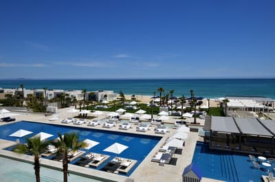 Des moucharabiehs arabo-andalous filtrant le soleil. Des flots de couleurs évoquant les Matisse, Picasso, Delaunay et autres grands peintres du XXe siècle séduits par les lumières de la Côte d'Azur... A 1h30 de Tanger sur la Riviera marocaine, le Tamuda Bay Beach & Spa jette un pont entre la culture locale et l'art de vivre à la française dans un esprit French Riviera ! Lignes épurées, graphisme étudié et nuances rappelant les compositions des fauvistes, la déco arty-chic donne le ton : ici vous vivrez à l'heure de la Côte d'Azur de la grande époque, l'esprit marocain en plus. Comme à Saint Trop', dont l'esprit flotte sur le resort, laissez tomber chaussures et sandales, une belle plage borde le resort et certaines des 104 chambres et suites disposent d'un accès direct à la Méditerranée. Entre deux sessions de farniente face aux bleus profonds de la Méditerranée, prenez le temps d'explorer la face bien-être de ce resort dédié à la relaxation : le spa avec piscine chauffée est the place to be pour entamer une cure de remise en forme. En famille, vous pourrez sans scrupules laisser vos kids toute la journée, une villa des enfants XXL avec activités, y compris des ateliers jardinage, est à leur dispo. Profitez-en pour vous échapper, la région regorge d'activités culture & nature : vieilles médinas de Tétouan, Tanger et de la charmante petite cité de Chefchaouen, visites de coopératives et randonnées dans les montagnes du Rif !