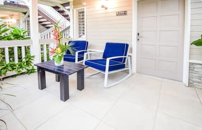 Un petit cocon ! Elle trouve la parfaite harmonie entre l’intérieur et l’extérieur avec sa structure ouverte. Le mélange de bois, de verre et de rotin rend l’ensemble harmonieux. C’est une parfaite balance entre élégance et exotisme.