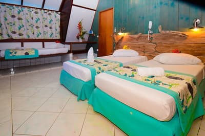 Le top ! Idéale pour les couples, elle baigne dans une atmosphère romantique et sereine. Cette belle suite profite d’une vue superbe sur les couchers de soleil et sur la piscine. Elle accommode un grand lit king et le coin salon est meublé de beaux fauteuils. Salle de bain chic.
