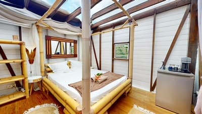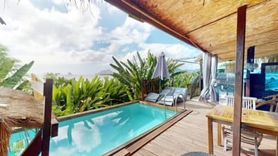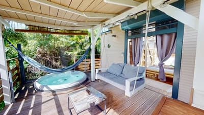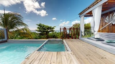 Des éco-lodges plutôt insolites dans un jardin tropical au sud de la Martinique, avec une très belle vue sur le Rocher du Diamant et un p’tit déjeuner sympa compris dans le prix.