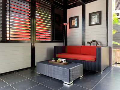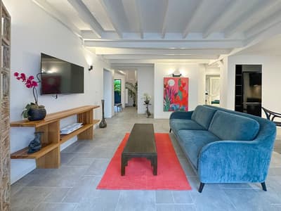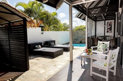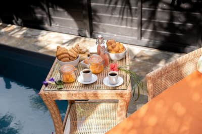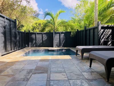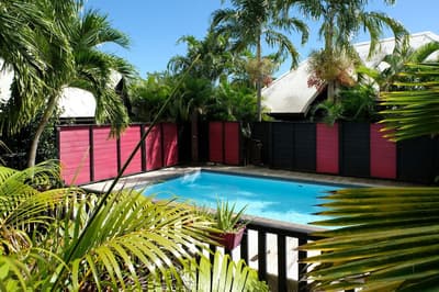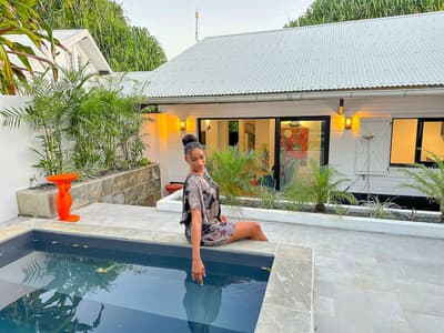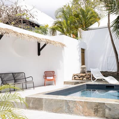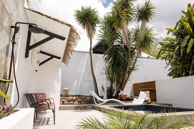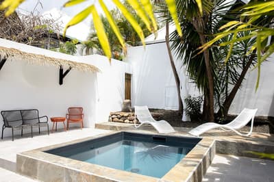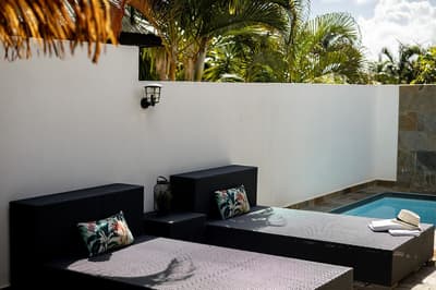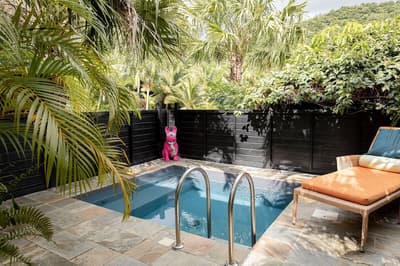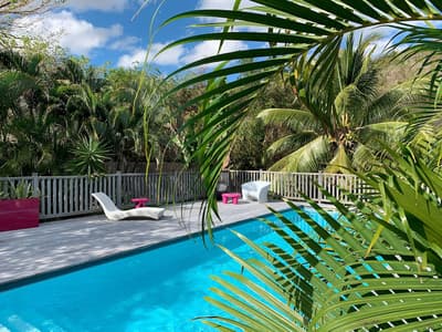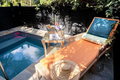 On barbote dans la piscine privée en écoutant le bruit des palmiers.