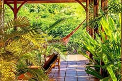 Le mieux quand on veut vivre un séjour authentique, c’est de poser ses valises directement chez l’habitant, non ? Bienvenue chez Sylvie et Bruno, deux locaux qui vous ouvrent les portes de leur maison typiquement créole, perchée sur les hauteurs du Sud-Est de la Martinique ! Ils sont connus pour leur accueil chaleureux et proposent deux chambres boisées tout aussi chaleureuses à l'intérieur de leur maison. Il y a fort à parier que vous apprécierez le lit à baldaquin et la petite sieste dans le hamac sur la terrasse. Sentez les alizés vous caresser les joues et appréciez la vue panoramique sur l'Atlantique. L'avantage d'être chez l'habitant, c'est que les hôtes connaissent très bien les lieux : Sylvie et Bruno sont d'excellent conseil autant pour vos sorties à la plage que pour vos balades dans la nature tropicale de l'île et pour vos expéditions dans les petites villes. Le tout situé à environ 5 km. Côté petit déj', c'est là aussi typique : jus de fruit frais pressé, pain maison, café, thé et confitures locales. Un régal ! Ah, on a oublié de vous dire que le Domaine de la Puyferrat est au milieu d'une exploitation agricole de cinq hectares. Certains ingrédients bio viennent directement du verger. Difficile de faire mieux côté circuit court. Les hôtes vous présenteront avec plaisir leurs chèvres, leurs chiens, et proposent même un atelier cuisine martiniquaise uniquement avec des produits frais et locaux. Immersion assurée !