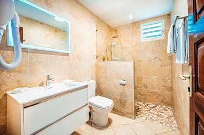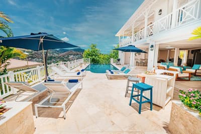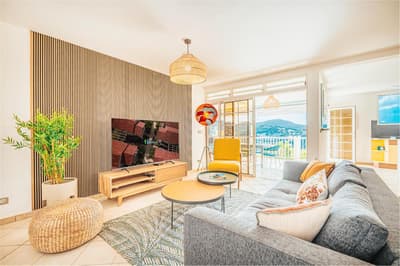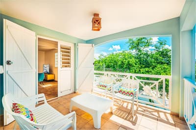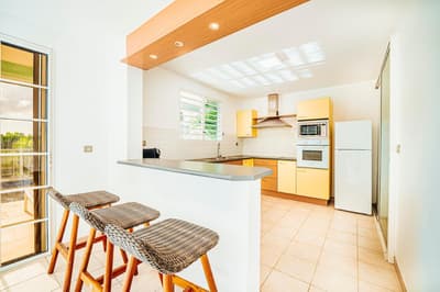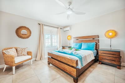 Amateur de beaux espaces modernes à la déco soignée ? Jetez donc un coup d’œil aux trois villas de l’Hôtel Bambou, situées en bord de mer sur la côte sud-ouest de la Martinique. Derrière une architecture typique de l’île aux fleurs, leur intérieur est résolument moderne. Passez la porte de la grande maison entre blanc et bleu pastel nichée sur deux étages et ouvrez grand les yeux : un espace cosy et lumineux s’offre à vous sous une chaleureuse charpente en bois. On aime les sofas bleu marine si moelleux, le mobilier boisé tendance et la décoration en hommage à la flore tropicale – ça en jette ! Côté terrasse, c’est encore mieux : le patio de 70 m², avec salon et transats où s’offrir des bains de soleil et piscine privée pour se rafraîchir la couenne, dispose d'une superbe vue dégagée sur la baie de l’Anse de l’âne. Vous les sentez, les alizées, vous chatouiller le visage ? Et comme les villas sont rattachées à la maison mère, on a accès à tous les espaces de l’Hôtel Bambou : à vous de voir si vous préférez goûter à la fameuse cuisine créole des trois restaurants en bord de mer, vous offrir un moment farniente du côté du SPA ou filer vous allonger sur les transats sur la plage. Quel que soit votre choix, le personnel très agréable de l’hôtel saura prendre grand soin de vous et pourra également vous renseigner sur les bonnes adresses et les activités phare du coin. Cerise sur le gâteau : l'Hôtel Bambou a le label Green Key, l'un des labels les plus anciens et les plus reconnus en matière de tourisme durable.