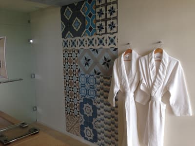 Climatisation, enceinte Bluetooth, peignoir, sandales et cafetière Nespresso.