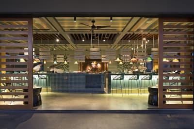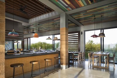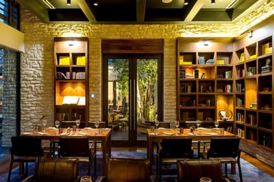 Jamais vous ne devineriez qu'un hôtel se cache ici, tellement il se fait discret ! La nature exhubérante du site n'aurait de toutes façons pas permis l'implantation d'une structure invasive. L'Andaz Mayakoba s'est donc frayé une place entre les branches de séquoias et de fromagers, entre les feuilles de palmes et de vanilliers, au bord d'une mangrove juste impressionante, en essaimant respectueusement ses unités blanches et bois le long d'un canal providentiel. L'entrée du resort est néanmoins spectaculaire... Cette structure arrondie à la fois futuriste et organique vous donne l'impression d'avoir trouvé le sésame d'une cité qui serait habitée par des hommes de la forêt. Ces hommes vénèrent d'ailleurs et visiblement des dieux animaliers qui s'exposent en grand sur les parois des bâtiments. Un jaguar à plumes multicolores semble surgir de la jungle. Un poulpe éléphantesque éclabousse un mur turquoise. On est ainsi plongé dans le bestiaire maya ! Fantastiques aussi, ces piscines design qui témoignent d'un parti pris esthétique géométrique qu'on retrouve partout, mais non sans âme. Casa Amate, le resto gastronomique, en est le digne exemple. Ses murs de pierre apparentes alternent avec d'immenses baies vitrées. Construit autour d'un patio, il propose quatre ambiances : "Bar Studio", "Bibliothèque, "Estancia" et "The Comedor". Une vraie merveille...