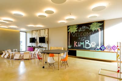 Grâce à ses murs et son carrelage de couleur clairs, elle est lumineuse et accueillante. La pièce est simple et cosy tout en étant apaisante et agréable. C’est une pièce ouverts procurant une sensation d’espace. De belles lampes rendent l’ensemble plus élégant.