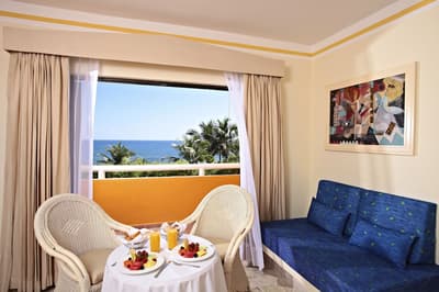 Située face à la mer, son balcon ou sa terrasse aménagée offre une vue formidable sur le front de mer. Dispose d’un coin salon meublé avec un beau fauteuil, une petite table en bois et une banquette. Elle peut accommoder deux lits doubles ou un très grand lit. C’est un espace agréable avec une sensation d’ouverture procurant calme et sérénité.