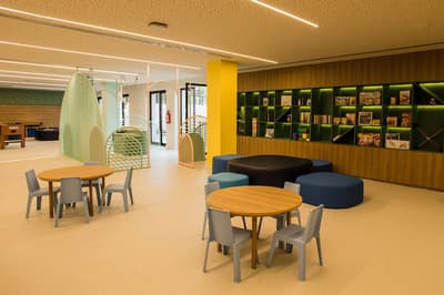 Avec son carrelage de couleur claire et ses murs blancs, la suite est lumineuse. Elle baigne dans une atmosphère légère et sereine. Quelques touches de couleur bleue ajoutent du chic à l’ensemble.