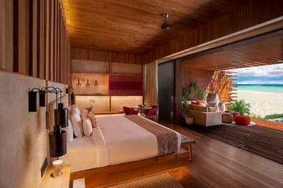 C’est un sanctuaire de bien-être disposant d’une piscine chauffante et offrant des privilèges exclusifs, des équipements de bien-être et des soins spa privé. Ce havre de paix est luxueux et profite d’une vue époustouflante sur le lagon couleur jade. C’est une villa ouverte procurant une sensation d’espace. Dispose d’une baignoire extérieure très exotique.