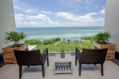 Elle offre une vue splendide sur l’océan et se situe dans le hall à quelques pas de la plage Nizuc et de la piscine principale. Elle dispose d’une terrasse, aménagée d’un mobilier, pour vous détendre et prendre des bains de soleil.