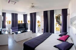 La chambre comporte un lit super king-size et dispose d’un coin salon avec canapé confortable. L’ensemble est dans un style zen avec une dominance de blanc et violet et la salle de bains est équipée d’une baignoire hydromassage.