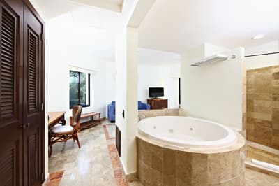 Elle dispose d’un Jacuzzi privé d'où vous pourrez apprécier un verre de vin en toute tranquillité, et d’une terrasse spacieuse avec vue sur la jungle d'où vous pourrez apercevoir les singes hurleurs et les singes-araignées qui traînent autour du complexe. À noter que vous aurez accès aux zones exclusives du Select Club, notamment à la piscine réservée aux adultes et à la section beach-club.