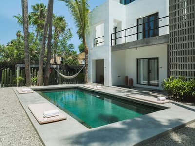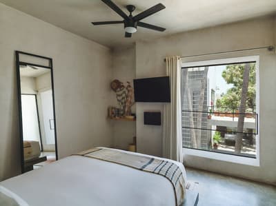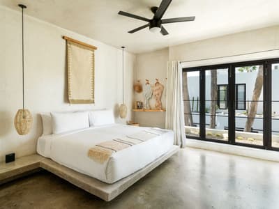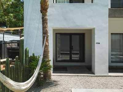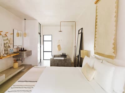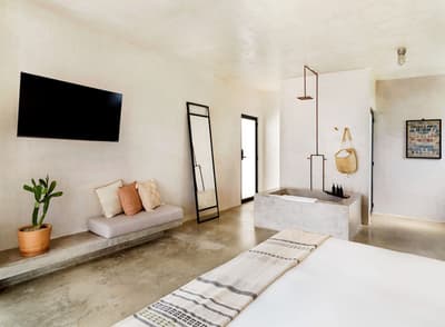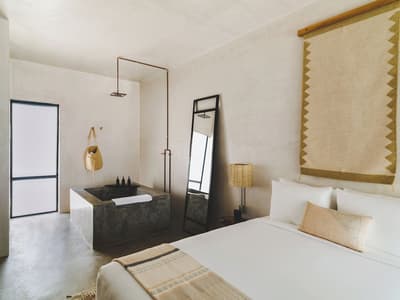 Conquis par la beauté et l'énergie du quartier Arty, le Drift San José del Cabo a choisi d'y poser ses valises. Bien que minimaliste, son design a bel et bien puisé son inspiration dans l'esthétique locale. Le bois, la pierre et l’acier habitent chaque espace, créant ainsi une atmosphère délicieusement reposante. Et l'artisanat indigène apporte ce supplément d'âme qu'on adore, perceptible d'entrée de jeu ! Quant à la légèreté du mobilier, elle contrebalance à merveille la densité des matériaux de construction. Les chambres, dont la plupart disposent de baies vitrées courant du sol au plafond, sans oublier leur balcon, bordent une vaste cour plantée de palmiers, de manguiers et de cactus, où milieu de laquelle trône une superbe piscine. Sur le toit-terrasse, vous profiterez d'une vue plongeante sur les rues de la ville, assis confortablement dans votre chaise Acapulco, made in Mexico ! L'hôtel veut créer des liens et organise tout un tas d'événements pour souder "sa communauté". Avis aux célibataires ! Tous les jeudis soirs, par exemple, il vous propose de vous retrouver autour du bar Mezcal, avec de la musique live et des tacos mexicains ! D'ailleurs, la cuisine du resto est top. Mention spéciale pour le taco au thon poêlé et un taco végétarien à base de patate douce et de champignons ! Les habitants sont également toujours les bienvenus aux events de l'hôtel, un vrai plus pour s'immerger dans la culture locale. Raison pour laquelle le Drift San José del Cabo s'est tissé un réseau incroyable pour vous faire profiter d'expériences nature et culture uniques, via leurs partenaires et "amis" précise-t-il.