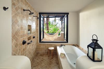 Imaginez un hôtel perché sur une petite falaise à la pointe sud de la Péninsule de Baja avec les vagues de la mer de Cortès qui viennent lécher la plage et se briser sur les rochers. Bienvenue à l'Esperanza ! Ici le standing est furieusement haut de gamme et pourtant l'esprit reste décontracté ; paillotes traditionnelles, longues allées pierreuses, lumières douces et palmiers qui se balancent au vent, l'endroit est propice à la farniente. D'autant plus avec ce panorama de dingue sur la mer. La vue est particulièrement spectaculaire du côté de Cocina del Mer, l'un des quatre restaurants gastronomiques de l'hôtel où vous pourrez vous régaler de poulpe grillé ou de fettuccine de homard dans un cadre délicieusement romantique. Petite particularité : point de chambre ici mais uniquement de maisons et des villas fort spacieuses qui promettent confort et intimité. Parfait pour ceux qui n'ont guère envie de supporter les bruits de chambre imposés par des voisins indélicats et rêvent d'un chez soi haut de gamme au bord de l'océan. Notez que les suites et villas se coulent dans de douces teintes claires et comportent pour la plupart une terrasse privée avec jacuzzi où il fait bon buller en regardant le soleil se coucher. Méga classe, non ? Niveau activités on est pas en reste - entre les loisirs nautiques, les escapades autour du patrimoine local et les activités sportives il y a largement de quoi faire.