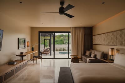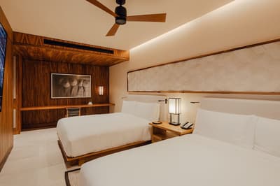 Situé à Cabos San Lucas et voisin direct du parcours de golf conçu par Tiger Woods, le Nobu Los Cabos s'étend entre désert et océan. Ultra design, ses extérieurs sont absolument saisissants ! Et toutes ses baies vitrées établissent le lien entre la plage de sable doré et ses intérieurs. Ce temple du zen, Nobu oblige, est composé de plusieurs unités de style contemporain, blanchies à la chaux. Le teck est également très présent dans l'architecture. Les matériaux de construction employés sont d'ailleurs durables. Côté nature, cactus, agaves et maguey, parterres d'herbes aromatiques et potager composent les jardins du resort, auxquels se sont greffés un jeu d'échec géant et des fontaines. Les chambres de couleur sable, avec leur mobilier et lanternes à la japonaise, leurs portes de placard shōji et leurs baignoires en bois, sont des bulles de sérénité. Les piscines privées sont très réussies et plus qu'appréciables, même si les quatre piscines communes du resort sont magnifiques. En soirée, elles servent de cadre à des spectacles live. Les restaurants forment le maillon fort du complexe, avec une variété et une qualité sans pareille. Coup de coeur pour la cuisine locale et bio du The Restaurant ! Quant au parcours d'hydrothérapie du Spa, on adore. Vos enfants seront non seulement heureux de retrouver leurs copains aux Kids Club, mais aussi d'aller voir ces bébés tortues que le resort protège, dans le cadre d'un programme établi par la municipalité.