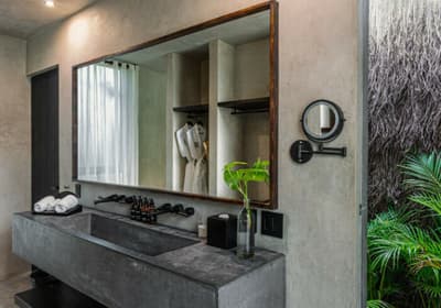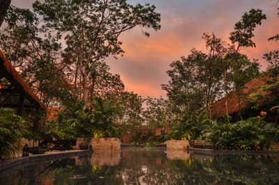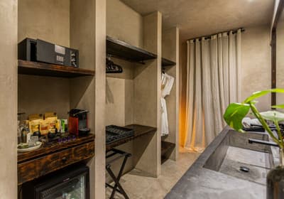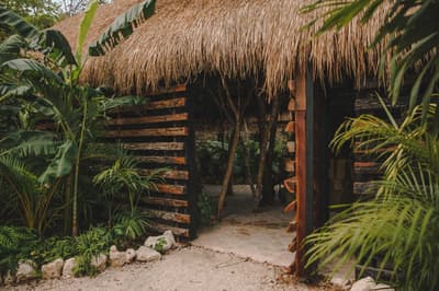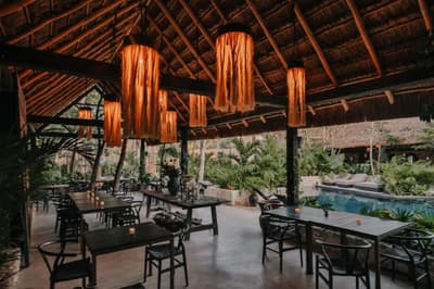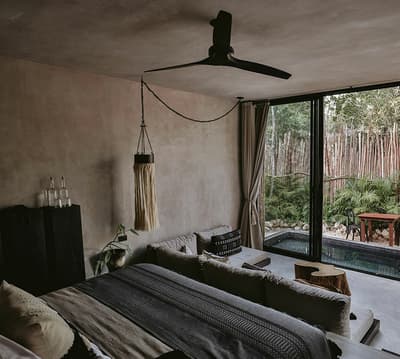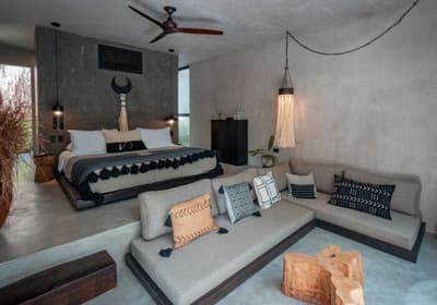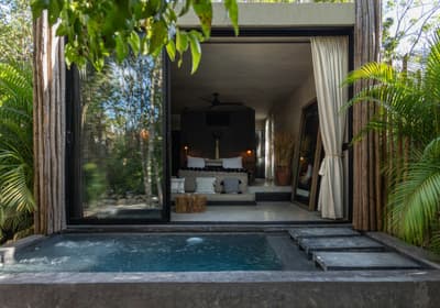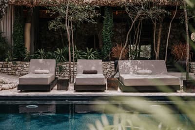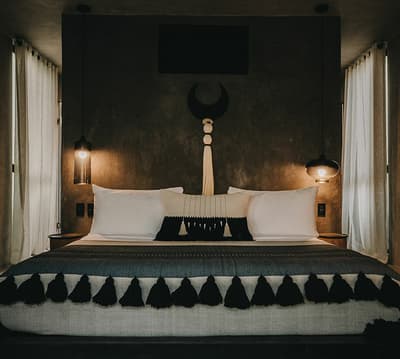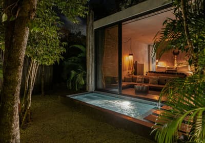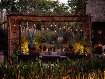 Rassurez-vous, le Bardo Tulum n’a aucune paternité avec Brigitte Bardot. C’est bon, on respire ! Dans la croyance tibétaine, “bardo” désigne un état de transformation où l’âme renoue avec son essence universelle avant d’être purifiée. Vous voyez le délire ? Pas vraiment ? Allez, on vous explique ! L’hôtel Bardo est un lieu dédié à l’introspection, c'est ce genre d’endroit où le temps se suspend, où on déconnecte de son Insta pour se reconnecter aux énergies telluriques et à Mère Nature. Vous êtes adeptes de méditations nocturnes, de reconnexions sonores ou de séances de méditation avec un chaman ? Alors vous êtes au bon endroit ! Le point névralgique du resort, c’est sa piscine en béton noir qui émerge dans un écrin de nature. Hyper stylée ! En soirée, c’est le kiff : vous pouvez vous allonger sur les beds et mater le ciel étoilé. De nombreux sentiers éclairés par des centaines de bougies permettent de se balader la nuit et de profiter de la sérénité de l’endroit. De quoi retrouver un peu de calme avant d’aller dîner au restaurant de l’hôtel. Les vacances commencent bien, vous ne trouvez pas ?