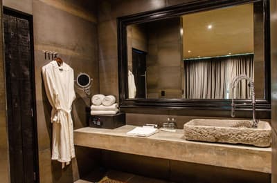 Nichée parmi la végétation luxuriante du complexe, le cadre est reposant et serein. Elle accommode un grand lit et dispose d’un grand canapé dans le coin salon. Salle de bain chic avec douche à effet de pluie.