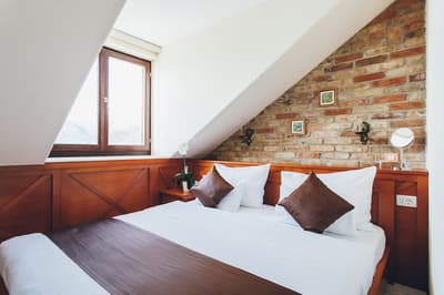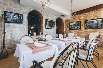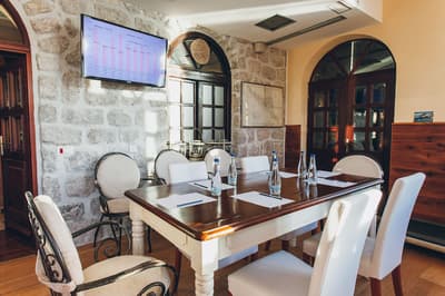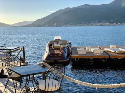 En front de mer, ce petit hôtel s’intègre naturellement dans le décor d’un village des bouches du Kotor ! Un bâtiment tout de pierres vêtu, au toit de tuiles, dont les volets de bois épousent la forme des fenêtres d’antan. Les pots de fleurs et d’arbustes jalonnent cette belle façade datant du 19e siècle, dans un désordre si charmant. Vieille cloche, horloge sur pied antique, tables en fer forgé… le cadre est on ne peut plus authentique ! La terrasse borde l’eau et contourne un minuscule port, où des barques typiques sont amarrées, sous le caroubier centenaire et jusqu’à une petite plage improvisée. Il suffit de descendre l’échelle pour plonger dans une eau cristalline et se délecter de la vue sur les collines tout autour. L’intérieur de l’hôtel a gardé son cachet d’autrefois : murs bruts, poutres, meubles en bois foncé, sol en marbre et vieux lustres… Tant dans le restaurant que dans les chambres, l’enchantement est au rendez-vous. Quel plaisir de prendre l’air sur sa terrasse privée, intime grâce à un jardin vertical en guise de séparation ! Ou de savourer son petit déjeuner au bord de l’eau, quand l’église de Donja Lastva est baignée de la lumière du soleil. Si vous aimez la simplicité, l’authenticité, le calme… cet hôtel de 7 chambres est fait pour vous.