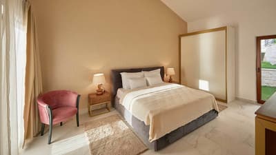 Le top ! Nichée parmi la végétation, le cadre est merveilleux. Elle accommode un grand lit et dispose d’un bureau. Le salon est meublé de beaux fauteuils et d’un canapé. Salle de bain avec douche à effet de pluie.