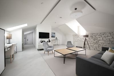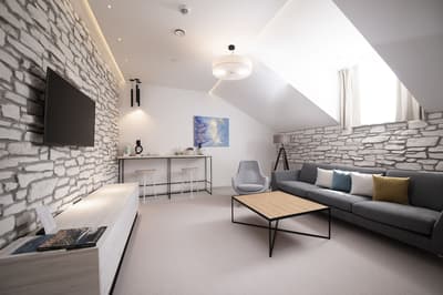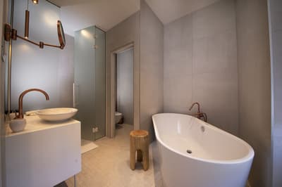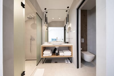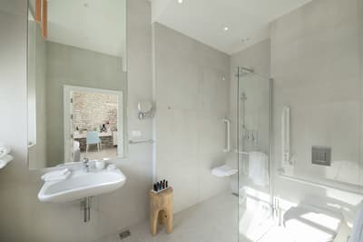 Le top ! Cette belle chambre profite d’un cadre merveilleux. Elle accommode un grand lit et le coin salon est meublé d’un canapé et d’un fauteuil. Salle de bain chic avec douche à effet de pluie.