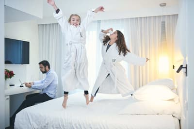 Sous ses allures un peu royales (sûrement le nom qui veut ça), l'hôtel Windsor se rapproche davantage d'un hôtel populaire. Pourquoi ? D'abord parce que c'est une adresse historique et emblématique à Biarritz. Une véritable institution hôtelière depuis 1948 ! Et qui en est à sa troisième génération, avec Jean-Pierre Héguy aux commandes. Un hôtel de famille, intimement attaché à sa ville et au Pays basque. Car Jean-Pierre Héguy, comme ses prédécesseurs et toute son équipe, est amoureux de Biarritz et de la région. Il aime et connaît les "gens d'ici", les producteurs du cru. Il aime aussi ses clients. Des clients qui viennent et reviennent régulièrement à l'hôtel pour leurs séjours biarrots - comme vous, bientôt ! Et des locaux qui passent prendre un verre au bar lounge, manger un truc vite fait au Blue Café ou prendre un repas gourmet Chez Eugénie. Un hôtel populaire, donc, mais avec toute la noblesse du terme. Populaire au sens de proche des gens, tout le contraire d'un hôtel fermé sur l'extérieur où vous seriez enfermé. Et puis ici, d'ailleurs, pas de piscine. Pour aller faire trempette, c'est juste à côté, sur la Grande Plage, que ça se passe. Et c'est très bien comme ça !
