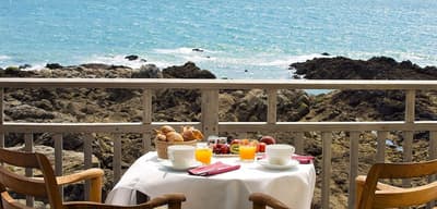 Il est bien intégré, cet hôtel de l’Océan ! Typiquement rétais avec sa façade blanche, ses volets de bois vert et son toit tout en tuiles. Des plantes partout mais soigneusement agencées, tout comme l’intérieur joliment décoré. C’est coquet sans être guindé. Les chambres aussi vantent le style local et sont toutes personnalisées. Des murs lambrissés de blanc et toute une gamme de bleus et de verts : forcément on est à la mer ! Dans le bar, une farandole de fauteuils club tout rondouillards. Et à l’arrière — vous ne l’aviez pas vue ? — voici la piscine, et en plus elle est chauffée ! En avance pour dîner ? Installez-vous dans le coin dédié, avec sa cabane ostréicole pour goûter l'apéritif « Fraise de Ré ». Et ce soir, vous dînez au restaurant l’Océan, mais à condition de réserver ! Le chef sait jouer du piano, comme du brasero durant les mois d’été : alors, poisson à la plancha et légumes du marché ou bien saucisse joufflue et pommes de terre grenailles ? Le Barbecue est une autre option: une vaste terrasse en bois à l’atmosphère chic-décontractée. Asseyez-vous à cette grande table pour partager le repas ! Ici, pas d’assiette, mais des plats servis dans des feuilles de palmiers. Et en famille ou en tribu, le mood devient agréablement décomplexé...