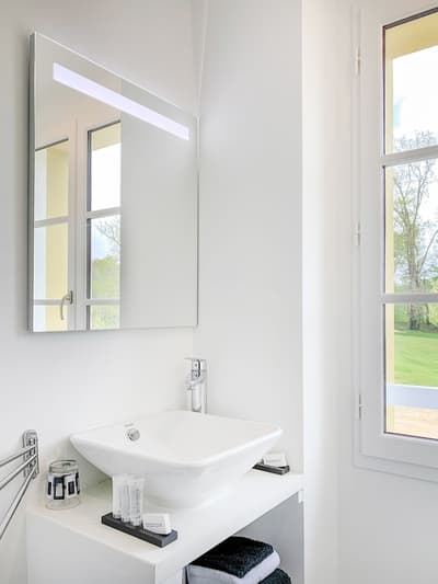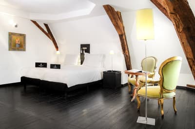 Comme une grande envie d'authenticité ? Ici, vous en aurez ! Dans ce château du XVIIe devenu un hôtel de charme 4 étoiles, qui surplombe la vallée de la Dordogne, les poutres et les pierres apparentes ont le beau rôle. Et les natures mortes aux murs. Et les miroirs vintage, totalement à leur place. Et le parquet massif, aussi. Sauf que ce parquet est peint en noir : les poutres, sans rien perdre de leur cachet, deviennent juste divines dans ce cadre ! Pareil pour les pierres, qui donnent aux chambres du Château Les Merles cet aspect de loft tellement contemporain et juste parfait. Quant à l'escalier tournant, il devient presque une œuvre d'art... Bref, vous l'avez compris, ce château a beau dater un peu (c'est quand même un peu le principe), il est pile-poil dans l'air du temps ! Amateurs de vrais décors, vous allez vous régaler. Au moins autant qu'en mettant les pieds dans le restaurant gastronomique de l'hôtel. Et avis aux fans de golf : sachez qu'ici, il y a aussi un terrain 9 trous qui n'attend que vous...