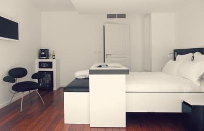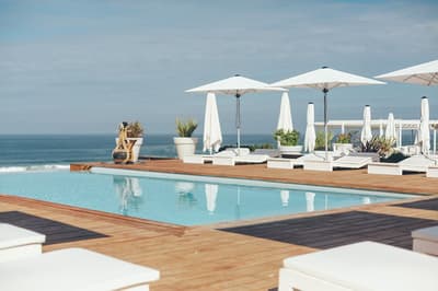 Biscarosse, capitale des hydravions — ces paquebots des airs pilotés en leur temps par Mermoz ou Saint Ex’ ! Mais pour l’instant, direction la plage et son paquebot des sables. Car oui, c’est là, au sommet d’une dune, que se dresse l’une des adresses les plus emblématiques de la station balnéaire. Il a plus d’un siècle, ce grand cube tout blanc, face à l’océan. Et que vous optiez pour une chambre standard (21 m2 tout de même) ou cette premium de 32 m2, la déco est standardisée mais superbement épurée. Du noir et du blanc et, pour le parquet, la chaleur du bois exotique. Comme pour mieux vous susurrer : "Ce n’est pas moi qu’il faut regarder mais plutôt l’océan qui fait son ciné" ! Alors oui, clairement, on privilégie les chambres avec au moins un petit balcon. Impossible de se lasser, dès le saut du lit, du spectacle des vagues et du chant du ressac. L’Atlantique est à votre portée, et une petite plage privée vous est même réservée. Il fait trop frais ? Sautez dans la piscine extérieure mais agréablement chauffée ! Juste avant d'aller déjeuner au bistro : chipirones ou assiette de bulots ? Et ce soir, ce sera dîner sur l’immense terrasse ou dans l’ambiance feutrée de la salle du restau aux sièges roses tout rigolos. Un air de jazz, quelques notes de blues : le bar et ses cocktails signatures souligneront la soirée.