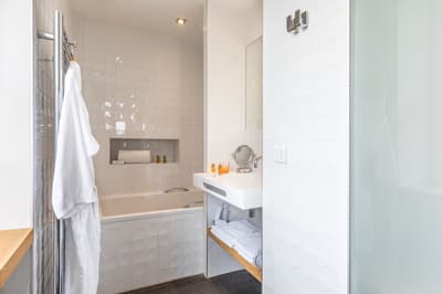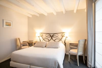 Bienvenue dans ce petit hôtel plein de charme niché à Guétary, petit village de pêcheurs sur la côte basque ! Ici, on respire, on se laisse bercer au gré des influences océaniques, loin de l’agitation des stations balnéaires. Quand vous arrivez sur place, vous avez la sensation de mettre les pieds chez des amis. Vous découvrez une maison des années 30 typique de la région, avec ses murs blancs éclatants et ses volets rouges. Et les petits palmiers qui vont bien ! A l’intérieur, l’atmosphère se veut à la fois chaleureuse et contemporaine, avec de gros fauteuils en cuir et un comptoir nappé de planches en bois massif, splendide. Faites votre check-in ici, en admirant la toile orchestrant des mandalas qui s’entremêlent comme des rouages d’une horloge. Ici le temps s’écoule tranquillement, et on adore ! Dans votre chambre, vous pourrez admirer l’environnement par la fenêtre, tantôt la montagne avec la Rhune qui trône, tantôt le village avec l’océan en trame de fond. Ici, on vient pour se ressourcer mais aussi pour goûter à la merveilleuse cuisine étoilée de la famille Ibarboure. C'est une explosion de saveurs basques entre terre et mer qui vous attend ! A déguster sur la terrasse quand le temps est de la partie. Sinon, vous pouvez aussi tenter le Briket’Bistrot, avec sa salle épurée à la scandinave. Bref, un hôtel familial bien agréable, au calme, qui vous garantit une vraie escale gourmande au cœur du pays basque, deux pas de Saint-Jean-de-Luz.