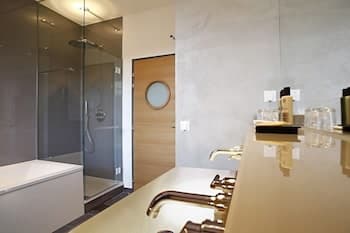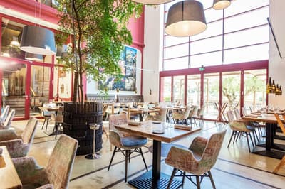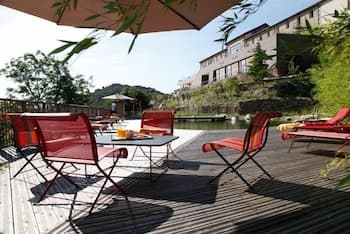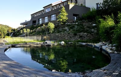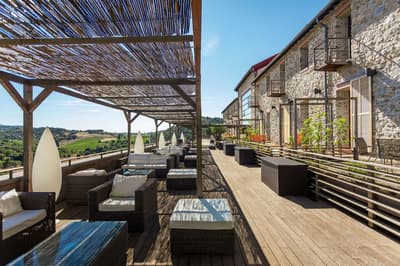 Sa longue silhouette se dessine sous le château médiéval de Bélesta... Le Domaine Riberach est en lieu et place de l’ancienne cave coopérative viticole du village ! En découvrant cette friche, deux architectes, Karin Pühringer et Luc Richard (un enfant du pays), ont été séduits. Ensemble, ils ont décidé de lui donner une seconde vie. L’endroit abrite désormais les chais du nouveau domaine viticole, mais aussi un établissement 4 étoiles. Les propriétaires y distillent toutes leurs convictions : les vignes sont cultivées en bio, la piscine est un bassin naturel filtré par des plantes, et géothermie et énergie solaire sont mises à contribution. Quant à l’architecture, elle est écoresponsable, épurée et chic. C’est même la pierre angulaire du projet. Les anciennes cuves ont été ouvertes et aménagées en chambres et suites donnant sur des terrasses ouvertes sur la nature, les vignes et le jardin méditerranéen en contrebas. Oui, vous allez vraiment dormir dans une cuve, mais attention, une très belle cuve ! Quant au plafond Eiffel de la salle des presses, il a été préservé dans ce qui est devenu le resto (de renom), La Coopérative. Mais la slow live passe aussi par le spa... Devinez où il a été construit ? Dans une enfilade de 5 cuves !