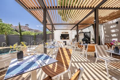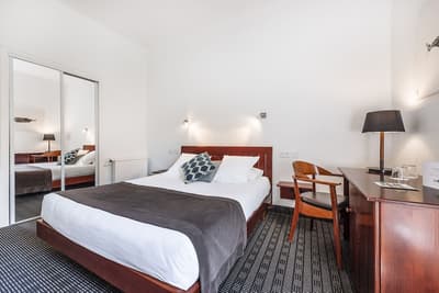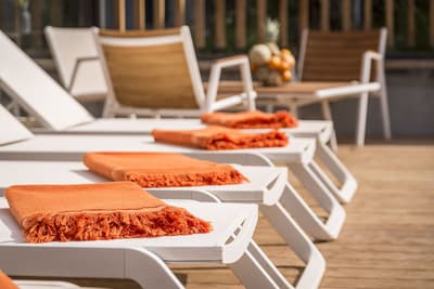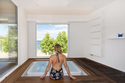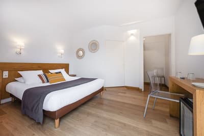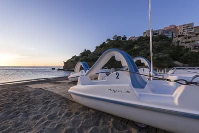 Les Elmes ont pratiquement les pieds dans l’eau... Il faut dire que c’est d’abord le nom d’une crique à Banyuls-sur-Mer sur la Côte Vermeille, en plein pays catalan. Dans ce 3 étoiles érigé juste à côté de la plage, vous déjeunerez face à la mer. Le must pour bien commencer la journée ! On risque de vous envier vos stories... Côté chambres, certaines donnent sur la grande bleue, d’autres sur le jardin. L’hôtel en a 31 en tout, plus 3 suites aménagées dans la nouvelle extension. Là, depuis votre lit, vous aurez une vue juste imprenable sur la baie des Elmes ! Idem depuis votre baignoire, au travers de grandes baies vitrées... Un grand moment en perspective ! Une fois installé, vous pourrez descendre poser votre serviette sur le sable ou partir vagabonder sur le sentier du littoral. A moins de revenir profiter de la petite piscine - chauffée - entourée de sa plage en bois. Côté resto, vous n’aurez que l’embarras du choix, car l’établissement a non pas une mais deux tables ! L’une pour déguster des saveurs méditerranéennes et autres produits du terroir, sous une véranda ouverte sur la mer aux beaux jours. L’autre pour une salade ou une grillade près de la piscine. Et n’hésitez pas à passer ensuite au salon pour tester un Banyuls grand cru !
