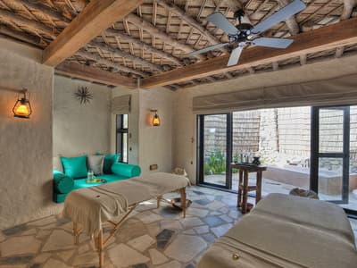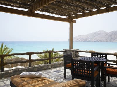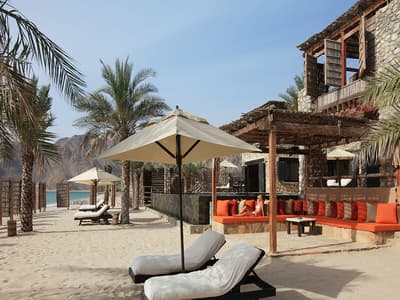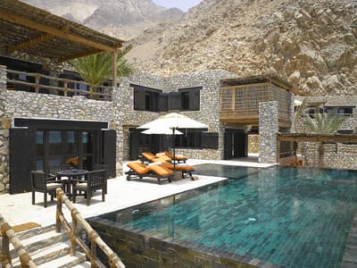 Soyez prévenu, le Six Senses Zighy Bay figure régulièrement dans le top 50 des plus beaux hôtels de la planète ! Ce refuge paradisiaque est planqué au pied de falaises escarpées, au sud-est de la péninsule de Musandam. Difficile de faire plus confidentiel que cette enclave omanaise au sein des Emirats Arabes Unis. Sa situation ultra-isolée lui vaut même d’avoir son propre fuseau horaire ! L’arrivée décoiffe : depuis le haut d’une montagne, vous pouvez rejoindre ce resort posé au bord d’une eau cristalline (pour de vrai) en voiture ou en parapente pour les plus casse-cou ! Votre chauffeur sort du coffre de son 4x4 une voile… Et vous n’avez plus qu’à vous laisser planer jusqu’à une plage de sable blanc. Pas mal comme check-in, non ? Autre option tout aussi digne de James Bond : approcher ce no man’s land en speedboat. Une fois sur place, l’émerveillement se poursuit. Le Six Senses Zighy Bay est conçu tel un village omanais, dont les villas en pierre sont séparées par des ruelles de sable où gambadent des chèvres. Préparez-vous à vivre hors du temps, sous la devise des concepteurs de la marque Six Senses : « no news, no shoes », en version mille et une nuits.