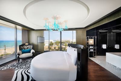 Idéale pour un séjour en amoureux, elle comprend un balcon, d'où vous pourrez vous détendre, après vos activités, tout en contemplant la vue imprenable sur la mer. À noter qu’elle peut disposer de chambres communicantes. Un bureau est également disponible, si vous êtes en voyage d’affaires.