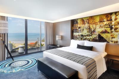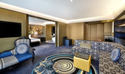 L’ensemble est dans un style contemporain avec des accessoires et des luminaires design, des tableaux colorés et des fresques murales abstraites qui harmonisent le tout. La chambre est dotée d’un lit king et la salle de bains en marbre est équipée d’une baignoire et douche séparées. Elle comprend également un coin salon/séjour pour vous détendre et vous divertir devant la télé. À noter qu’elle est accessible aux malentendants avec des alarmes visuelles et des dispositifs de notification pour la porte et le téléphone. Le tout dans une atmosphère conviviale !