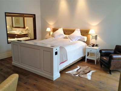 Magnifiquement aménagées, elles arborent des parquets chaleureux, des tissus luxueux, une technologie de pointe discrète et des détails raffinés. Les lits sont somptueux et les suites junior supérieures et la grande suite disposent de cheminées à bois, approvisionnées quotidiennement avec des paniers de bois de chauffage frais. Les salles de bains élégantes et bien aménagées sont équipées d’une grande baignoire, d’une douche à effet pluie séparée, WC et sèche-cheveux. Si vous aimez lire de la poésie sous les étoiles, vous pouvez demander la chambre 15, qui est la chambre double supérieure avec Poetry Loft; montez une échelle de fermier jusqu'à la minuscule mezzanine, qui regorge d'un beau recueil de poésie. Une petite fenêtre s'ouvre vers le ciel pendant que vous vous retirez dans votre fauteuil club. Le tout dans une ambiance champêtre !