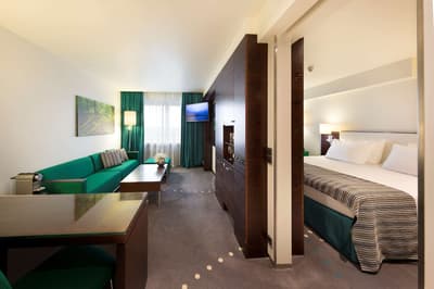 Idéale pour un long séjour ou pour plus d’espace et d’intimité, cette jolie suite dispose de toutes les commodités nécessaires et d’équipements modernes pour un séjour agréable. À noter que vous aurez un accès gratuit au centre de remise en forme Club 26.