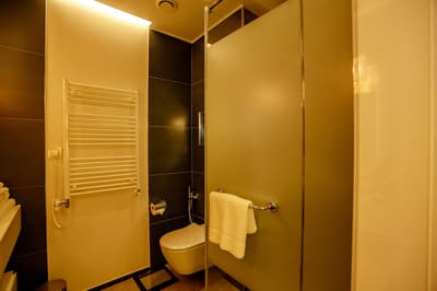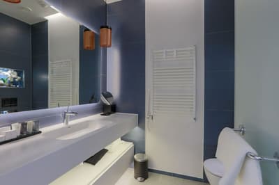 Accueillante, elle bénéficie d’une décoration contemporaine et comprend une moquette au sol, un mobilier tendance et se complète dans des tons chaleureux. La chambre est dotée d’un lit double ou jumeaux et la salle de bains est équipée d’une douche. Le tout dans une ambiance relaxante !
