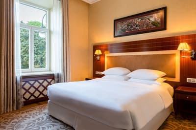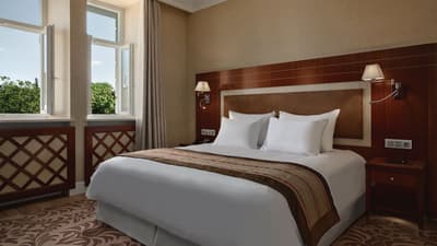On le surnomme la Perle de la Baltique... C’est le must de l’hôtellerie à Vilnius, rien de moins ! Le bien nommé Grand Hotel Kempinski est la représentation parfaite du « Grand hôtel » tel qu'on se l'imagine : une immense façade néo-classique qui fait penser à un palace de Londres ou de Deauville, un porche avec voiturier poussant un chariot doré, dès l’extérieur, tous les codes du palace sont cochés. Dans le hall, le cliché continue, et on adore ça ! Un lobby immense fait de marbre et de colonnes blanches, où le personnel en blazer rouge vous accueille avec une coupe de champagne. C'est ici que commence votre voyage dans le monde du luxe absolu. Chacune des 96 chambres offre des prestations à la hauteur des 5 étoiles. Entre le king size à draps de satin, les meubles en bois luxueux et la vue sur la cathédrale, on se prend pour une star en vacances. Les gourmets ne sont pas en reste. Au menu du restaurant Telegrafas, un dîner à la présentation digne d’un étoilé, arrosé de vins fins de la Baltique. Côté service, l’élégance est encore au rendez-vous avec un service de gouvernantes formées pour anticiper vos moindre désirs. Alors bien sûr, on n’a pas envie de sortir, mais plutôt de flâner au spa, le lieu de rendez-vous chic des Lituaniennes, ou de boire une coupette dans le café esprit Art déco. Mais, croyez-nous, ce serait dommage : avec sa situation idéale en plein cœur de la vieille ville, le Grand Hotel Kempinski est le point de départ parfait pour arpenter Vilnius à pied ! Bref, offrez-vous ce moment princier que vous avez bien mérité.