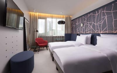 Ah, les berges de la rivière Néris... Le centre de Vilnius cache une pépite 4 étoiles qui va vous plaire ! On ne présente plus le groupe Radisson, reconnu pour son luxe, son confort et ses expériences personnalisées. Il a encore tapé fort avec ce hotspot engagé, labellisé Green Key. Ici, on table sur une architecture et un design intemporels, et sur le quartier des affaires plutôt que sur l'hyper-centre. But don't worry : quelques minutes de marche dans les ruelles pavées suffisent pour rejoindre celui-ci, profitez-en pour lever les yeux et contempler ce bijou classé au patrimoine mondial de l’UNESCO. Et pour respirer l’identité très cosmopolite de Vilnius ! Un décor épuré, des gigantesques baies vitrées et des couleurs vives sont la recette d’un hôtel qui se transforme en "the place to be local". Il faut dire que le Radisson Blu Lietuva et ses 478 chambres proposent aussi un spa, son restaurant, le Riverside, une salle de sport, un casino et un club ! Et on ne vous pas encore parlé du Skybar...