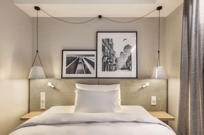 Si vous cherchez un hôtel familial en plein centre historique de Kaunas, vous êtes au bon endroit ! Situé dans le cœur de la ville, le Radisson Hotel nous fait vivre une expérience lituanienne hors du commun. Après une longue journée à découvrir la vieille ville, son l’architecture et ses musées en vogue, on a hâte d'y retrouver son lit. Et pour cause, les 206 hébergements de l’hôtel, décorés à la scandinave, sont chaleureux, chics et même avant-gardistes. Que vous choisissiez une chambre simple ou une suite plus spacieuse, l’expérience de sommeil ultime sera votre seule quête ici ! Bon ok, on profite quand même du centre de bien-être pour s’accorder un moment rien qu'à soi. Et après un massage ancestral et un soin du visage aux plantes, quoi de mieux que de découvrir les spécialités du pays revisitées au restaurant de l’hôtel ? On y découvre une cuisine moderne qui maîtrise avec brio les classiques lituaniens. Après un verre au bar, plutôt cosy, on descend en douce à l’Olympic Casino... Bien connu par les joueurs de la ville. L'expérience de sommeil ultime attendra bien un peu...