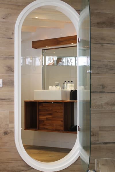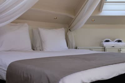 Cette belle chambre est idéale pour les couples et baigne dans une atmosphère sereine et reposante. De sa grande baie vitrée, elle profite d’une belle vue sur les jardins luxuriants. Elle accommode un grand lit et le coin salon est meublé de beaux fauteuils. Salle de bain avec douche à effet de pluie et baignoire.