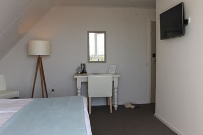 Cette belle chambre a tout ce qu’il faut pour un séjour agréable et confortable. De sa grande fenêtre, elle profite d’une belle vue. Elle accommode un grand lit et le coin salon est meublé de beaux fauteuils. Salle de bain avec douche.