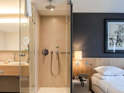 Cet ensemble de buildings avec passerelles suspendues et vue sur le fleuve vous donne envie de chanter « New-York, concrete jungle where dreams… » ? On vous arrête tout de suite. C’est dans la capitale néerlandaise que se trouve le Mercure Amsterdam City, et il vous donne une vision différente de la ville, loin des clichés. Situé dans un quartier périphérique, porte d’entrée de l’effervescence urbaine, le centre et ses canaux sont accessibles en 10 minutes de métro... Ou, mieux, en vélo, moyen de locomotion préféré des Hollandais… Ou, mieux, grâce à la navette fluviale de l’hôtel ! Avec ses 18 étages, attendez-vous à être happé par la vue dès que vous entrerez dans votre repaire. Mélange sage de confort et de chic, les chambres, avec leur king size, ont été pensées par les designers du groupe Accor pour vous permettre de décompresser après une folle journée amstellodamoise... N’hésitez pas à passer par le resto avant de vous lancer à l’assaut des nuits rouges. Avec son immense bar, cylindrique comme un totem, et sa terrasse au bord de l’Amstel, c’est un spot super agréable. Idéal pour déguster des harengs revisités ou boire une bière locale. Car l’hôtel est très investi dans un engagement vers plus de durabilité ! En plus des aliments locaux, de saison ou en provenance de sa propre serre, le Mercure Amsterdam City multiplie les actions green, comme l’installation d’un système de gestion de l’énergie ou la présence de nombreuses fontaines à eau. Allez, enfilez vos shoes les plus stylées : dans la ville la plus cool d’Europe, les codes de l’hôtellerie chic vont vous prouver qu’ils ont su se remettre en question !