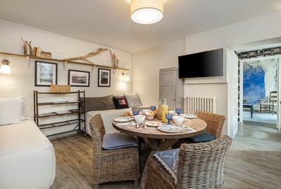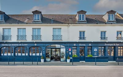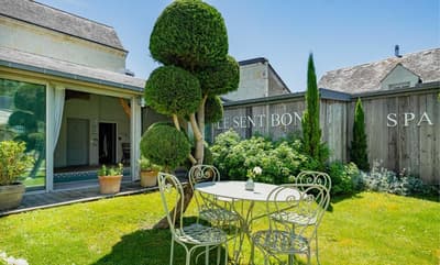 Si l’on n’était pas à deux anachronismes près, on imaginerait très facilement une scène avec « la Dame de Monsoreau ». Elle revêt son ample manteau et sort de son château par la grande porte. Elle descend vers la Loire et la suit sur quelques centaines de mètres jusqu’à une longue façade à la devanture bleue. Le but de sa courte promenade ? Le Sent-Bon Spa qui, outre les clients de l’hôtel, attire aussi un bon paquet de locaux. Un oasis de bien-être sur 300 m², avec sauna, hammam, bain bouillonnant, cabine de soin individuel et cabine duo. Anachronismes évidemment puisque ce roman d’Alexandre Dumas (sans t alors que le nom du village s’écrit désormais Montsoreau) a été publié en 1846 et que l’action se déroule en 1578. Vous aurez tout le temps de le bouquiner sur un transat au bord de la piscine extérieure chauffée, dans le beau jardin intérieur arboré. A moins de préférer le bassin de nage, chauffé lui-aussi mais à l’intérieur, abrité derrière une verrière. Vous avez le choix entre 11 confortables chambres et suites aux teintes douces ou 4 appartements, avec cuisine équipée, qui bénéficient également des services de l’hôtel. La Loire est juste en face, certaines chambres ont même une vue directe, vous êtes pile entre l’Anjou et la Touraine, vous allez vous éclater !