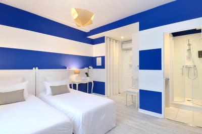 Il existe depuis 1837, à l’époque où la capitale britannique fascinait les Français par sa richesse et son cosmopolitisme. Bien sûr, il a connu des hauts quand les bourgeois affluaient pour voir leur rejeton en service militaire au Cadre Noir… et des bas avec une désaffection au fil du XXe siècle. En 2005, le Londres a fini par séduire un couple de passionnés, en quête de reconversion et prêts à le rebooster. La marquise en ferronnerie qui ornait la façade dans les années 1900 a été fidèlement reconstituée. Le rez-de-chaussée a été racheté et reconnecté aux étages. C’est sous sa structure métallique de type Eiffel que sont désormais servis le p'tit déj', bio et bon, ainsi que d’originaux bocaux du chef pour les repas. Une terrasse végétalisée au sud permet de profiter des beaux jours. Petits et grands peuvent y dévorer les 500 BDs disponibles à la réception. 2 appart’hôtels avec cuisine équipée accueillent d’ailleurs les familles dans de confortables conditions. Il en va de même pour les 29 chambres, toutes bien cosy, lumineuses et thématisées. Envie de dormir dans un lagon ou d’une déco british à la John Steed ? Il vous suffit de demander. Le Londres repart plein pot pour longtemps encore et, honnêtement, ça fait plaisir !