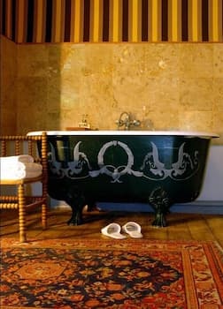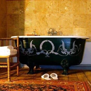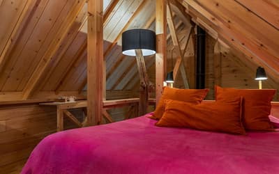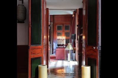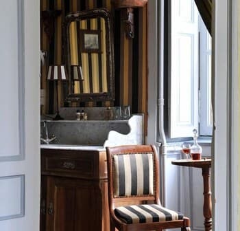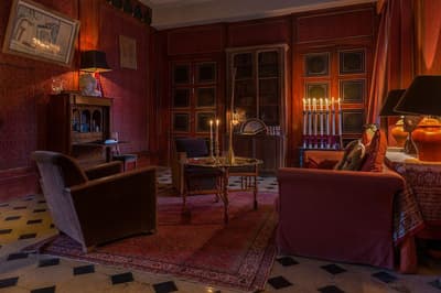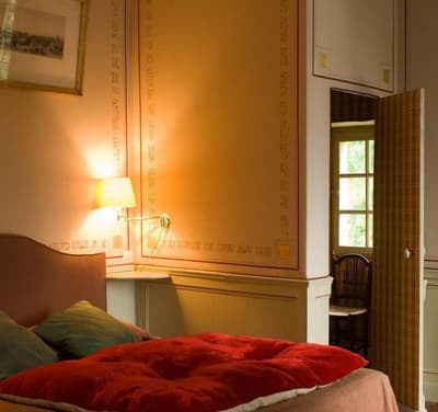 Sur le papier, un énième château dans la Sarthe, à la limite de l’Orne, c’est assez boring, surtout avec une façade en pierre assez austère… Que nenni ! Ici, grâce aux dons de décorateur de Ségolène et de Charles-Henry de Valbray, les heureux proprios, c’est carrément waouh. On a envie de sortir son phone pour mitrailler toutes les chambres et en faire des post d’enfer sur Insta. Il n’y en a que 11 mais votre plus gros problème va pourtant être de choisir. Besoin d’aide ? Vous pourriez retenir la chambre de Madame avec son grand baldaquin, ses beaux tissus rayés et sa baignoire ouvragée sur pieds. Plus modeste, la chambre Henri IV vous éblouira par le plafond peint de son chiffre royal, entrelacé à celui d’une dame qui était à la fois sa maîtresse et celle des lieux. L’orangerie abrite une suite à tomber, magnifiée par de hautes fenêtres et un décor champêtre provenant d’un théâtre de Barcelone. Sans parler de la datcha en mélèze, dans le parc de 10 hectares, avec jacuzzi et sauna privés. Le salon, la bibliothèque et la salle à manger sont évidemment à la hauteur. Surtout quand le maître des lieux se met aux fourneaux pour un dîner aux chandelles, alors qu’étincellent les carafes en cristal et les flambeaux d’argent.