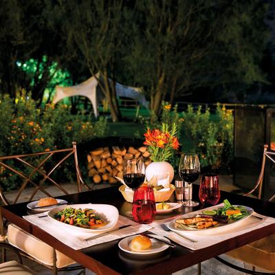 Cette magnifique suite profite de grandes baies vitrées qui font entrer l'extérieur et s'ouvrent sur une terrasse privée, avec des chaises longues et une table, pour prendre des bains de soleil et profiter du grand air dans le jardin. À noter que pour un véritable sentiment de paix, la chambre ne comporte pas de télévision, mais peut être fournie sur demande.
