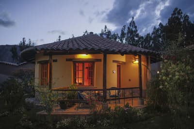 Le point de chute idéal pour profiter pleinement des paysages fous de la Vallée sacrée, tout en se relaxant et en se régalant : Sol y Luna est un véritable jardin d’Eden. Un paradis qui vous accueille à bras ouvert avec tout le confort et le professionnalisme qu’assure un Relais & Châteaux. C’est une vraie claque lorsqu’on arrive ! On est subjugué par la beauté des lieux et l’harmonie qui se dégage de ces maisons de pierres et de bois, implantées au beau milieu de la montagne, à 2800 mètres d’altitude. Et avant de plonger dans la jolie piscine installée dans le jardin, que vous avez évidemment repérée tout de suite, vous allez découvrir votre petit cocon… Les chambres donnent l’impression d’arriver dans une véritable maison d’hôtes. C’est un peu l’esprit des lieux d’ailleurs, puisque vous résidez chez une famille d’Européens tombés amoureux du Pérou. De l’art péruvien sur les murs, des meubles en bois sombre, des poutres apparentes, des salles de bain en marbre, c’est le luxe de l’authenticité qu’on s’offre sur un plateau ici. Et ça continue à table, avec deux restos délicieux, qui proposent une cuisine andine et péruvienne inspirée des produits locaux. Dont un installé dans le ranch du domaine ! Car oui, vous pourrez, en plus des randos et autres sorties en kayak, assister à des démonstrations de cavaliers sur leurs majestueux pasos, race endémique. Mais vous pourrez aussi évidemment partir en balade à cheval ! Après tant d’aventures, le spa vous attendra pour un bon massage ou un passage au sauna. A moins que vous ne preniez part à un cours de yoga pour communier avec la terre, le soleil et la lune. Sol y Luna, c’est la promesse de se connecter avec la nature !