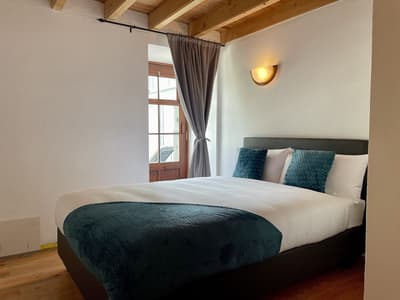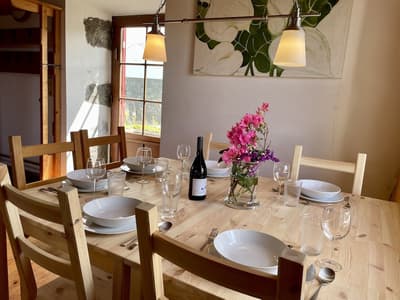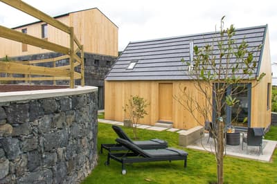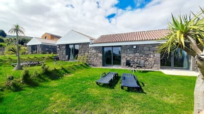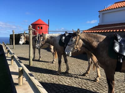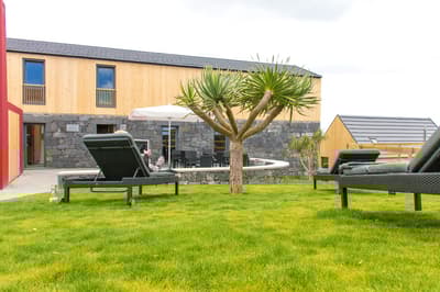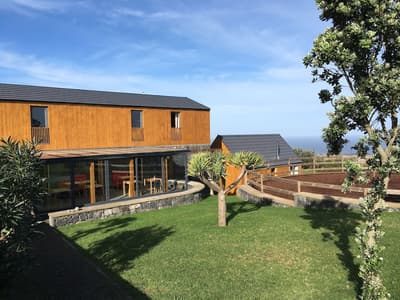 "Le vent du paradis souffle entre les oreilles d'un cheval" : si vous avez envie d'encadrer ce proverbe arabe glané sur Insta, c'est que vous êtes au bon endroit. Près du cercle parfait d'un petit manège à ciel ouvert, le Patio Ecolodge éparpille une dizaine de maisons aux façades en pierre ou en bois, aux toits de tuiles ou d'ardoise. Entouré d'herbe, de quelques haies et de murets, flanqué de son potager maison, ce hameau insulaire est la base parfaite pour récupérer après une journée d'aventure. Car dans ce lieu où l'environnement est une priorité, la vie au grand air est une passion ! À cheval donc (accessible aux débutants), ou à défaut à VTT (loué sur place) ou chaussé de vos chaussures de marche (ne les oubliez pas), vous serez au taquet pour partir explorer l'île de Faial côté nature. Pas de panique toutefois pour les fatigués, les flemmards ou les flippés qui trouvent les chevaux trop grands : le Patio Ecolodge dispose aussi d'un spa sympa, où vous pourrez buller en toute tranquillité. Et au pire, il y a même une coach de vie sur place. Qui sait, elle saura peut-être vous convaincre de monter enfin sur Oxicoco (Airelle en portugais), au lieu de contempler son portrait XXL au-dessus de votre lit.