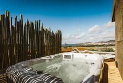 Sur la côte nord de São Miguel, le Santa Bárbara Eco-Beach Resort offre une expérience avec vue sur l’océan en Full HD ! On y ajoute un once de design contemporain et une vraie pincée d’écologie, et votre rêve de voyage green est total. Truc de dingue : l’hôtel se fond complètement sous la colline verdoyante et semble épouser les plages noires volcaniques. En pénétrant à l’intérieur, on découvre des espaces communs très design à l'architecture éco responsable en matériaux naturels et une décoration inspirée de la culture açorienne. Les studios et villas avec tarrasses ou jardins panoramiques invitent à l’évasion au rythme des vagues. Le must, c’est de réserver celle bordées d’un immense couloir de nage. Pour les autres, une superbe piscine à l’eau de mer surplombe la plage. Comme ça, pas de jaloux ! Après un spa bien mérité, un repas dans le restaurant de cuisine local et bio s’impose comme une évidence. De quoi sublimer votre séjour dans cet hôtel engagé qui dispose de son propre potager, privilégie les emballages réutilisables et économise la ressource hydrique en réutilisant l’eau de pluie.